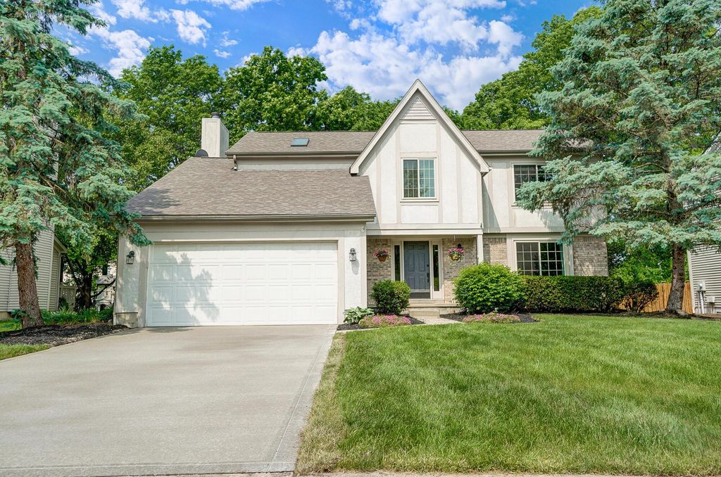 Beautiful and well loved family home located within walking distance of Olentangy Oak Creek Elementary School. Freshly painted Master suite has vaulted ceilings, updated bath with soaking tub and a HUGE walk-in closet. Three additional bedrooms are spacious! Major updates have been done for you including new roof (2020), HVAC (2019), driveway (2023), dual water heaters (2023), other updates include windows, blinds, garage door/opener, skylight, outside trim! Enjoy the paver patio and firepit in a beautiful tree lined backyard including flowering bushes in full bloom! First floor den, First floor laundry. Full Basement. This home is located close to shopping, parks, and bike paths and won't last long! Close to everything located in the heart of Lewis Center