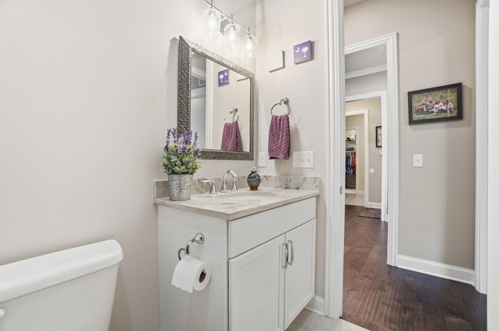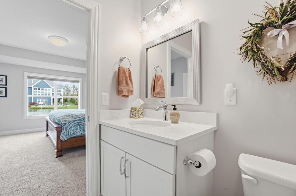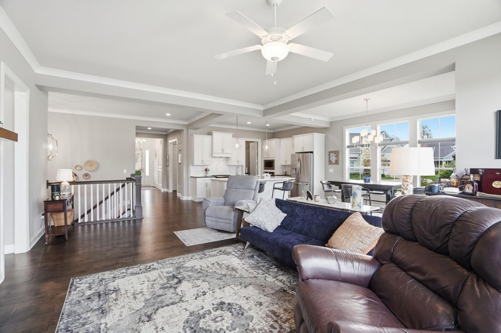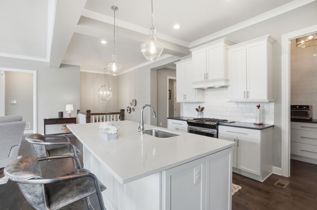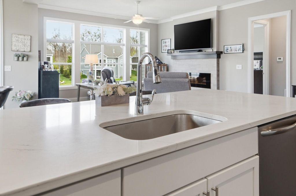 Discover refined living in this stunning Ranch home, built by Bob Webb, with 3,222 Sq Ft, on a walkout lot with serene pond views. The first floor owner's suite offers a private retreat with a spa inspired bath designed for relaxation. Inside, you'll find an open concept layout with soaring 10 foot ceilings, a dramatic wall of windows, rich hardwood flooring, custom trim details, and a beautiful decorative fireplace that anchors the main living space. The gourmet kitchen is both stylish and functional, featuring stainless steel appliances, an oversized island, granite countertops, and a dedicated prep kitchen to keep everything organized. With 4 spacious bedrooms, 3 full baths, this home offers luxurious finishes, easy living, and seamless indoor outdoor entertaining. Schedule your showing today!
